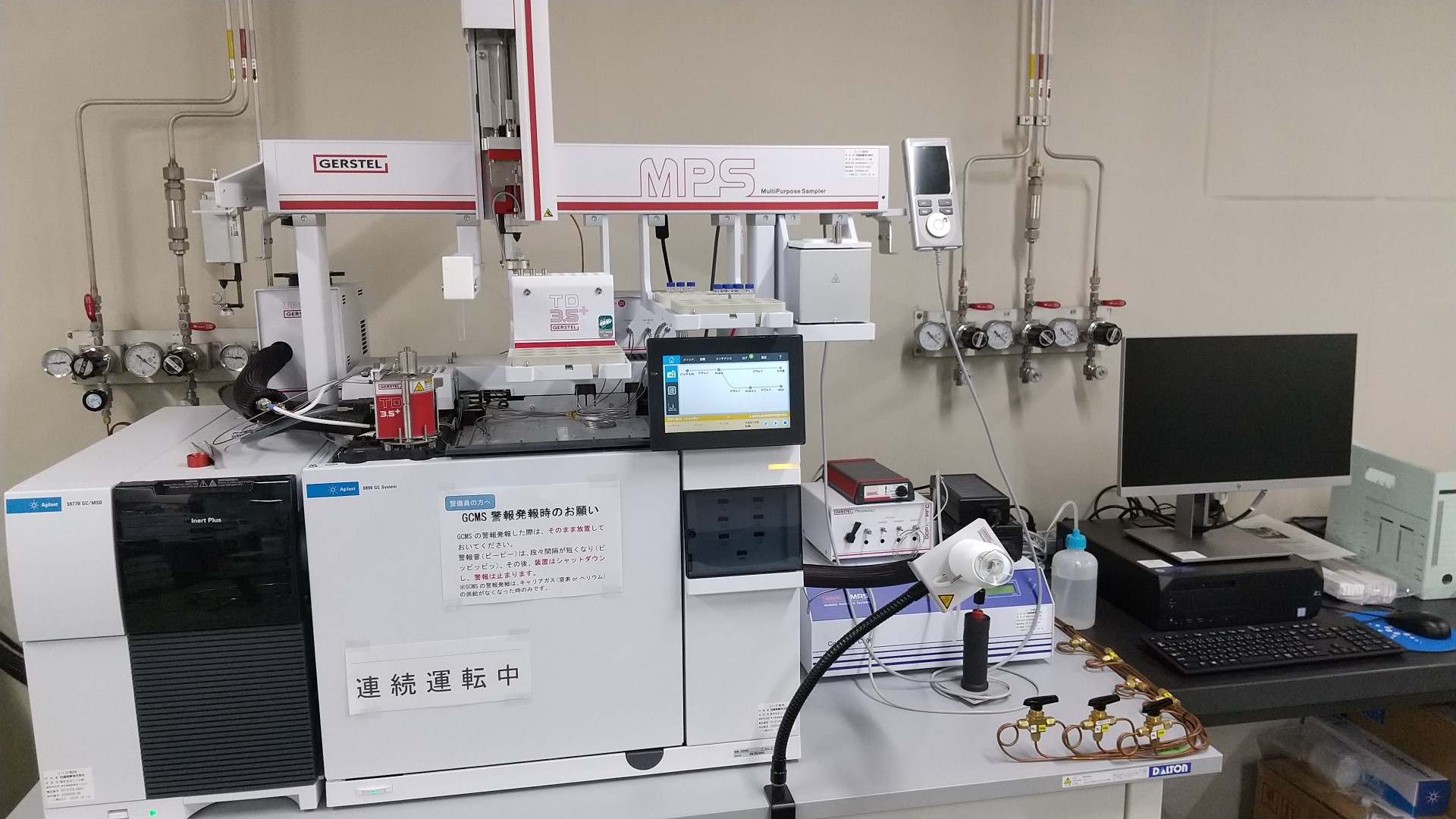 ガスクロマトグラフ質量分析計(GCMS)は、主に揮発性のある成分が分析対象であり、その成分特定ができる装置です。GCMSに加えてにおい嗅ぎポートが付属しています。食品の香気分析にご利用いただけます。